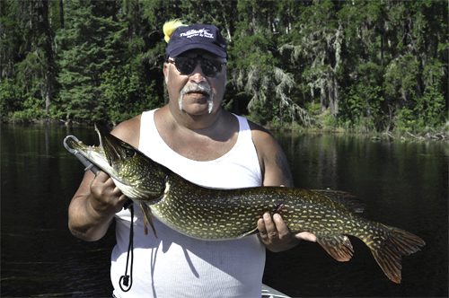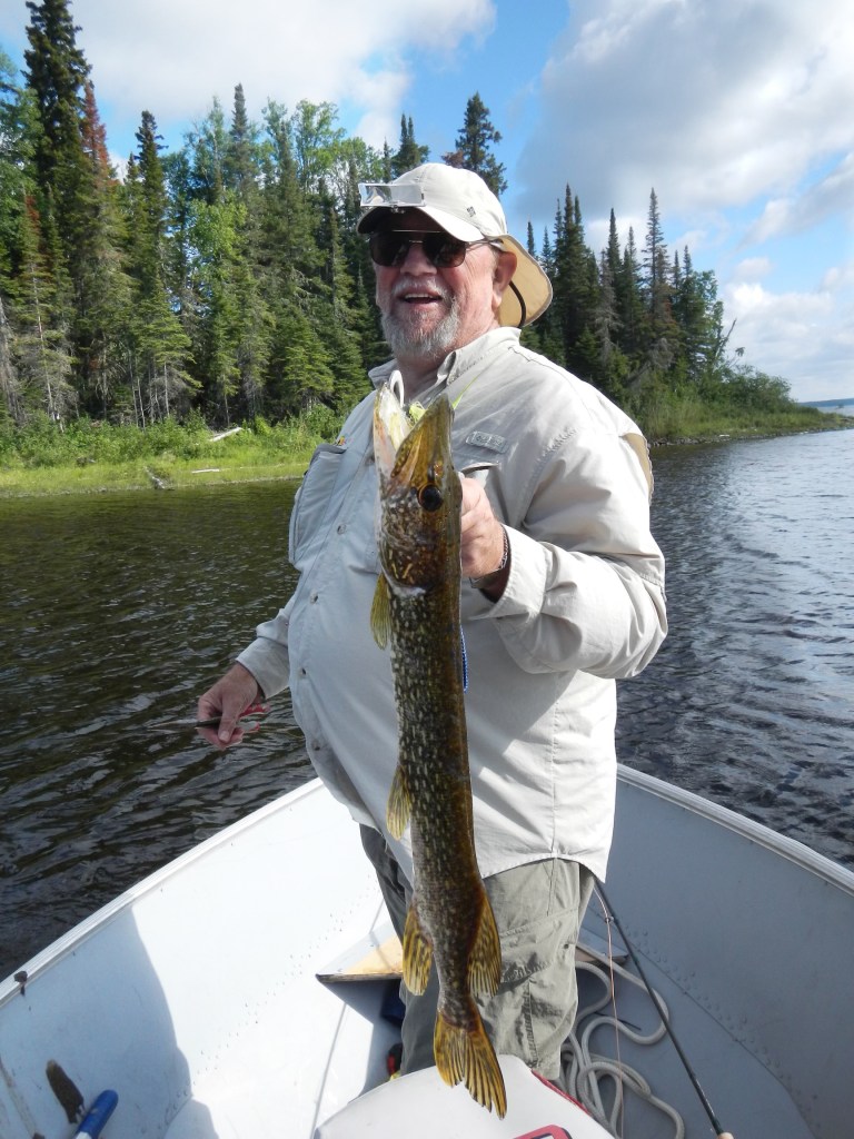 Kevin’s thinking about this because he’s planning a trip to northern Ontario. Kevin and I met in northern Ontario … 8 years ago. It was so much fun, casting into lily pads and reeds, using a deer hair frog, actually yanking it back (stripping with an attitude) and sure enough, that frog would ‘disappear’ in a flash of water. These were smaller Northern Pike, 20 to 30 inches long, and sometimes they were so quick, you could barely see the take.