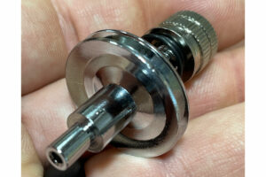 The Flex Coat thread tension devices employ the sewing industry standard design of tensioning thread. Position the thread between the polished chrome tension plates. The spring loaded knurled nut makes it easy to find the desired thread tension for your custom rod. The tension devices 0.187″ diameter mounting spud fits tight inside a hole drilled with 11/64″ or #17 drill bit. Replace, add to or build your own thread control board with Flex Coat Tension Devices.
